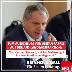 Mit großem Unverständnis reagiert Reinhold Gall, parlamentarischer Geschäftsführer der SPD-Landtagsfraktion, auf die Meldung, wonach die AfD-Landtagsfraktion Stefan Räpple entgegen ihrer öffentlichen Ankündigungen nach wie vor in ihren Reihen duldet: