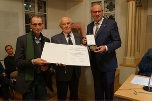 Für seine Forschungsarbeiten und Publikationen zur jüdischen Geschichte in Affaltrach und den umliegenden Gemeinden erhielt der Affaltracher Martin Ritter, langjähriger Vorsitzender des Freundeskreises ehemalige Synagoge Affaltrach, von der Israelitischen Religionsgemeinschaft in Württemberg (IRGW) und dem Landtag Baden-Württemberg die "Joseph-Ben-Issachar-Süßkind-Oppenheimer-Auszeichnung" verliehen. Reinhold Gall war bei der Preisverleihung vor Ort und gratulierte dem Preisträger zu seiner Auszeichnung.