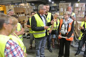 Am 9. Juli 2018 besuchte Reinhold Gall MdL mit einer Gruppe von interessierten Bürgern aus dem Wahlkreis das EDEKA-Zentrallager in Ellhofen. Nach einem sehr informativen Überblick über Geschichte und Arbeitsweise von EDEKA, der mit Kaffee und Kuchen noch versüßt wurde, ging es dann zu einem ausgedehnten Rundgang durch die Lagerbereiche. Die Dimensionen des Lagers beeindruckten dabei alle Beteiligten nachhaltig. Das große Kühllager für Frischware oder das sogenannte Trockenlager für die haltbaren Waren sorgten für Staunen. Die zahlreichen Mitarbeiter, die tagtäglich im Mehrschichtbetrieb, auch tief in der Nacht, dafür arbeiten, dass in jedem der rund 1.100 vom Lager belieferten Supermärkte, an jedem Morgen jedes Produkt erhältlich ist, haben besonderes Lob verdient. Besonders überzeugt zeigte sich Herr Gall von den guten Arbeitsbedingungen am Standort, wo beispielsweise auf Leiharbeit verzichtet wird und alle Mitarbeiter fest angestellt sind. Nach fast vier Stunden Rundgang gingen alle Beteiligten mit dem Wissen nachhause, was tatsächlich alles notwendig ist, damit wir einfach einmal schnell einkaufen gehen können.